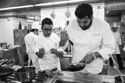 Nella mia filosofia di cucina, non esiste: io mi sento un cuoco, un uomo che cucina ispirato dalla passione e dalla volontà di esprimersi. Definirsi chef o cuoco non cambia la sostanza del mio lavoro e l’impegno che quotidianamente io e i miei ragazzi impieghiamo.